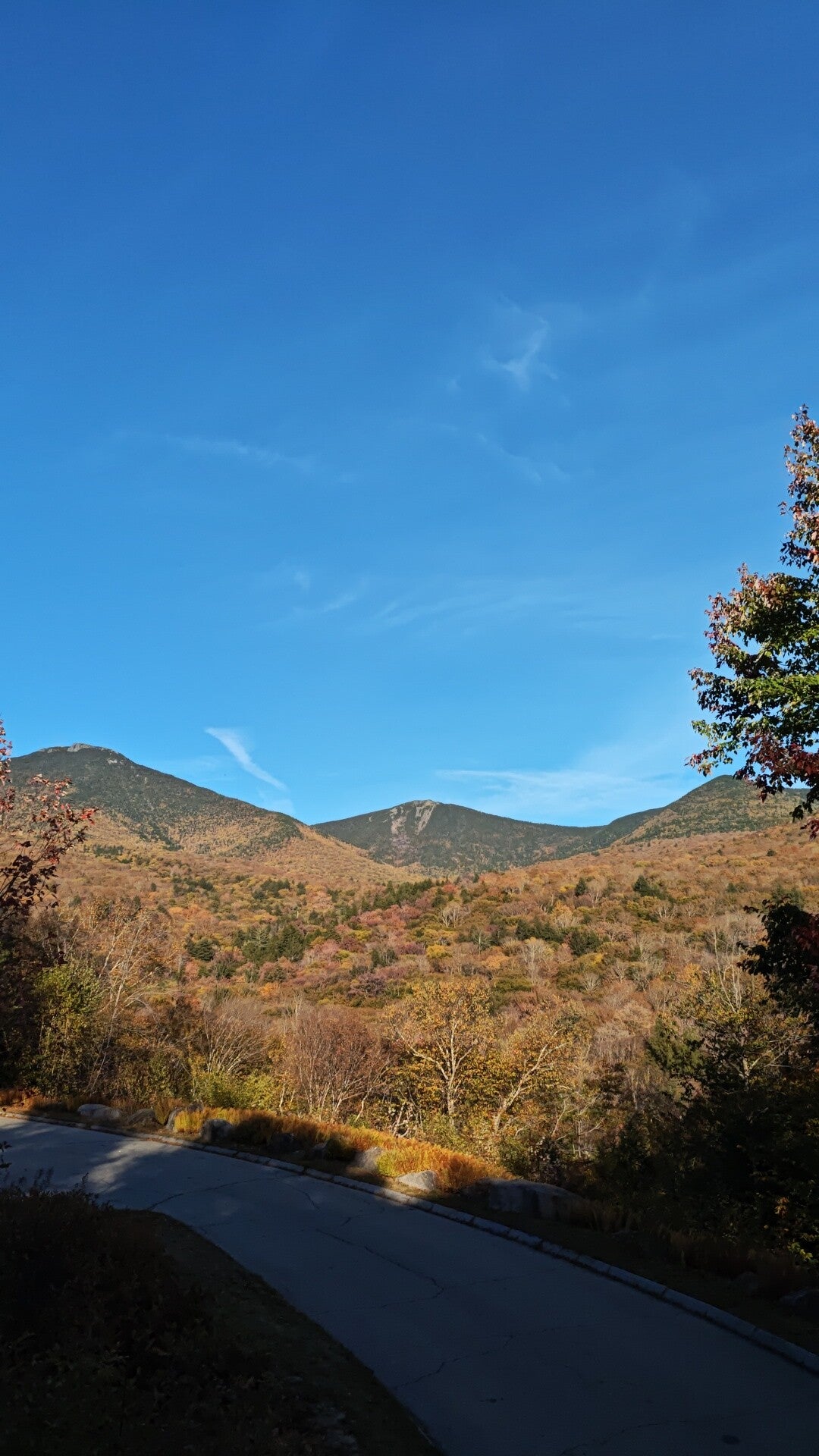 Am Nachmittag wechselten wir auf die Route 108 und dort wurde es wieder magisch. Enge Straßen, leuchtende Wälder, Sonne, die durch das Laub fiel. Genau das, was man sich vom Indian Summer erträumt 🍁