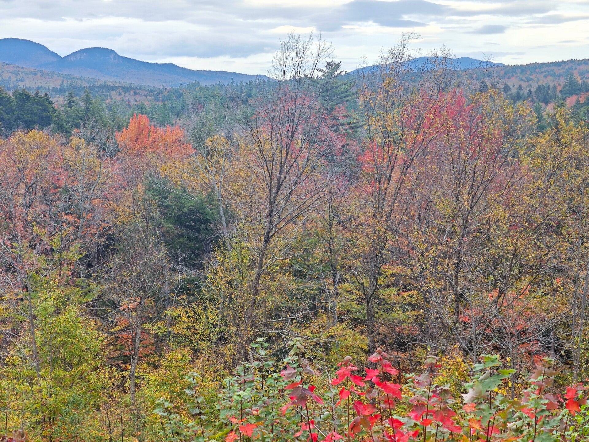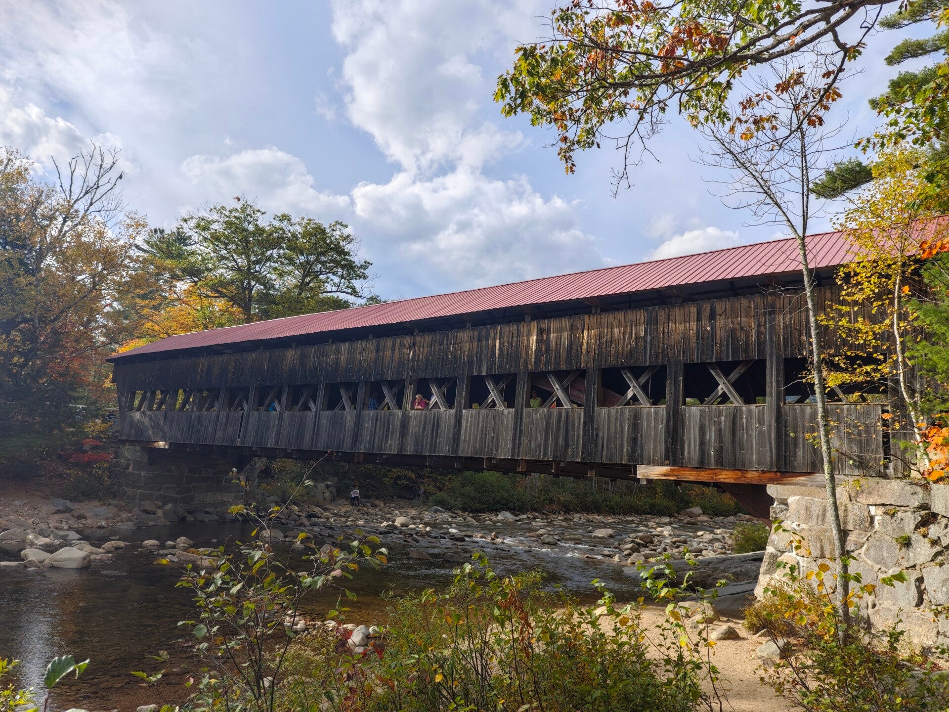 Am Vormittag starteten wir in Lincoln im Bundesstaat New Hampshire. Die Route führte uns quer durch die White Mountains hinein nach Maine, vorbei an Wäldern, klaren Bächen und Hügeln, die schon ganz im Farbenrausch des Herbstes standen 🍁
