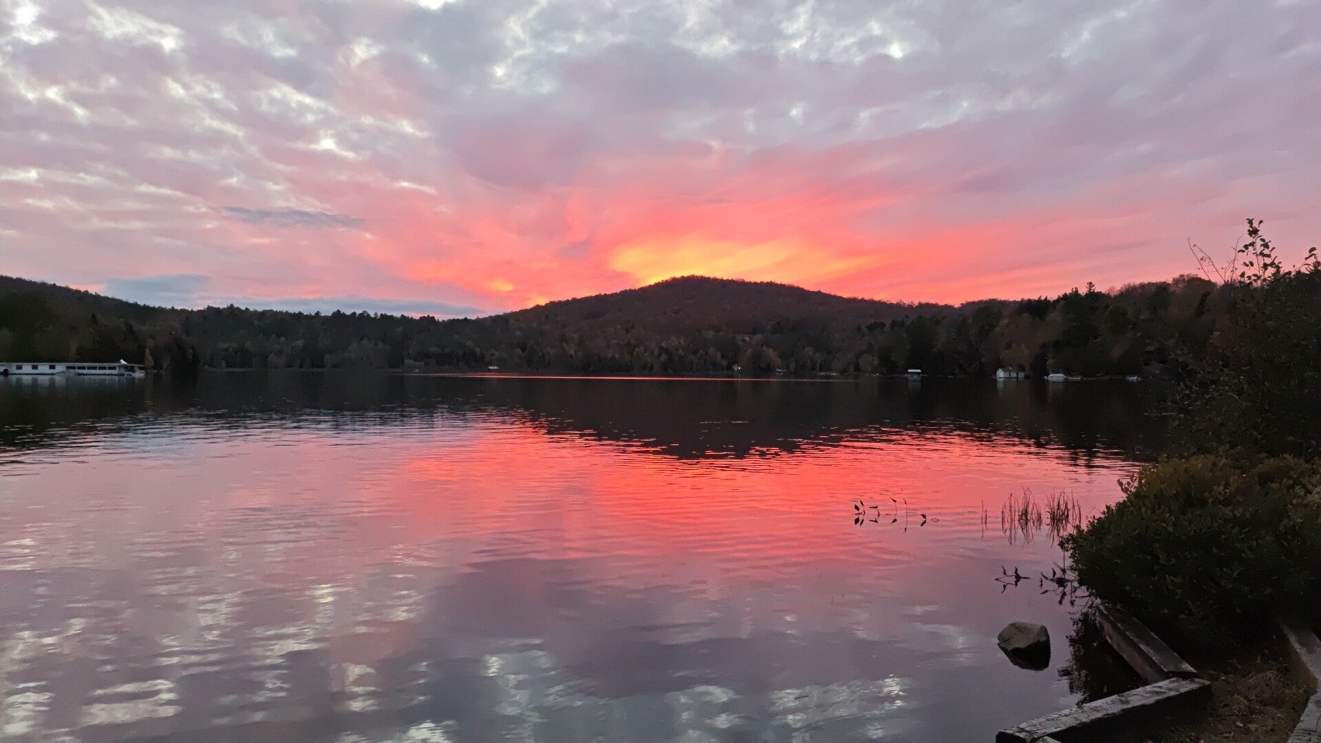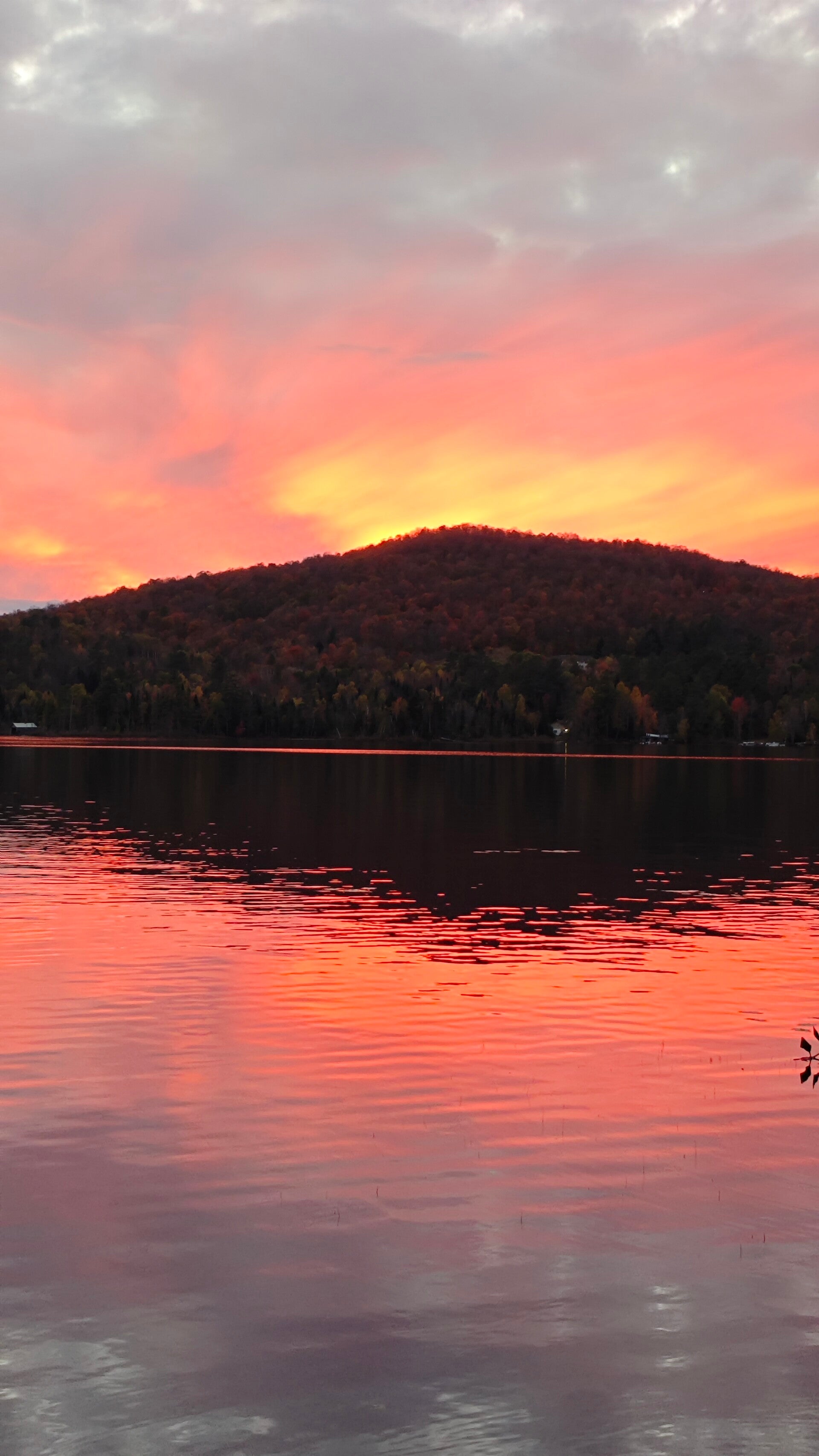 Am Morgen dann die Überraschung. Der Blick vom Balkon war faszinierend. Vor uns leuchteten die Wälder des Indian Summer und überall raschelte es leise. Auf dem Geländer entdeckten wir unzählige Marienkäfer, offenbar typisch für diese Jahreszeit hier. Hinter den Bäumen glitzerte der Moosehead Lake, still und weit, eingerahmt von Hügeln und Bergen. Die Luft war klar, die Stimmung ruhig, fast andächtig. Eine dieser Szenen, die man in sich abspeichert, weil sie mehr sagt als Worte können 🍁