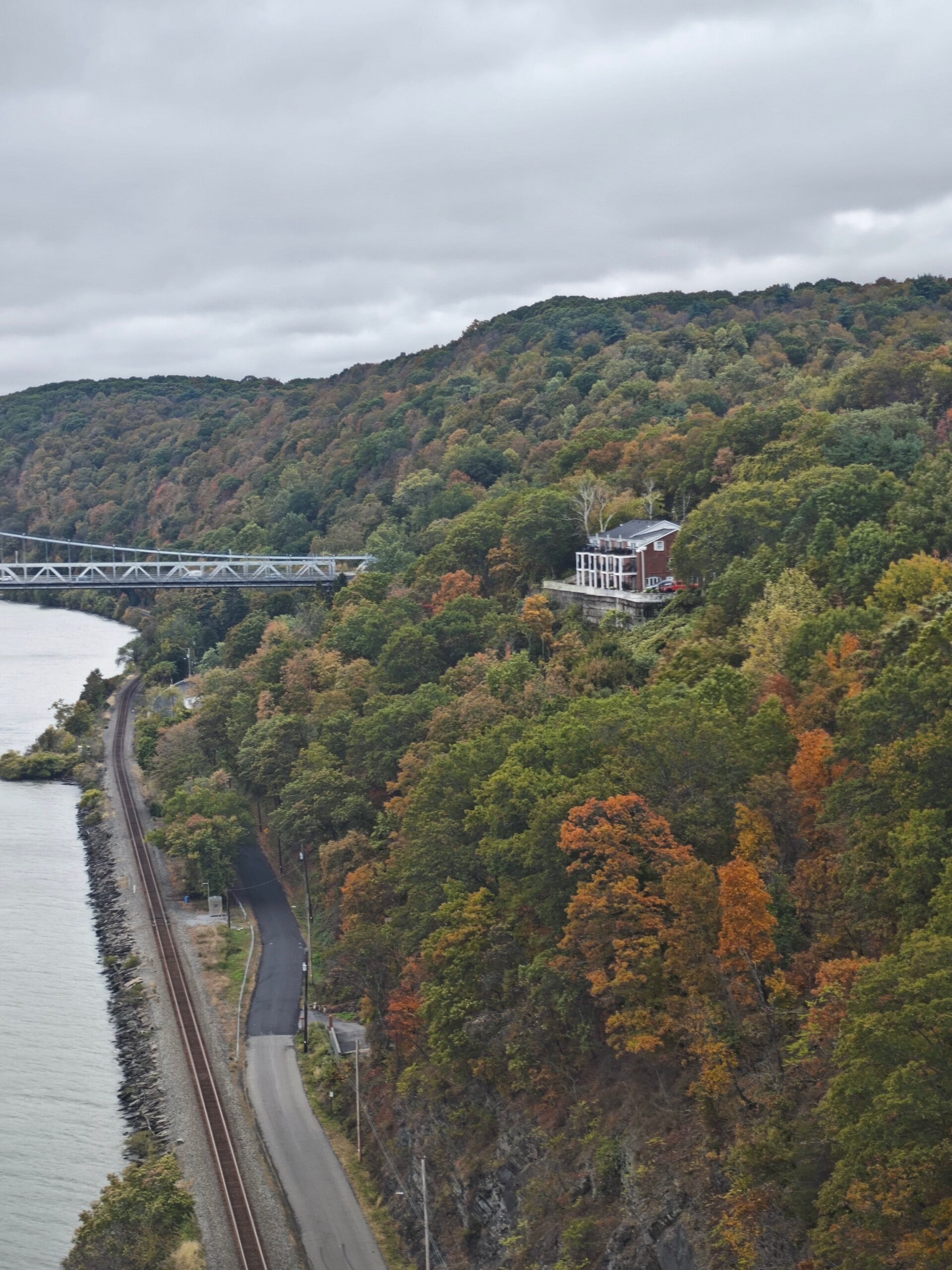 Über uns spannte sich die Wurts Street Bridge, eine der ältesten Hängebrücken des Bundesstaates New York. Grau und stark, sie verbindet Kingston mit Port Ewen, und wenn man darunter steht, hört man das leise Brummen der vorbeifahrenden Autos, wie ein Echo vergangener Zeiten 🌁