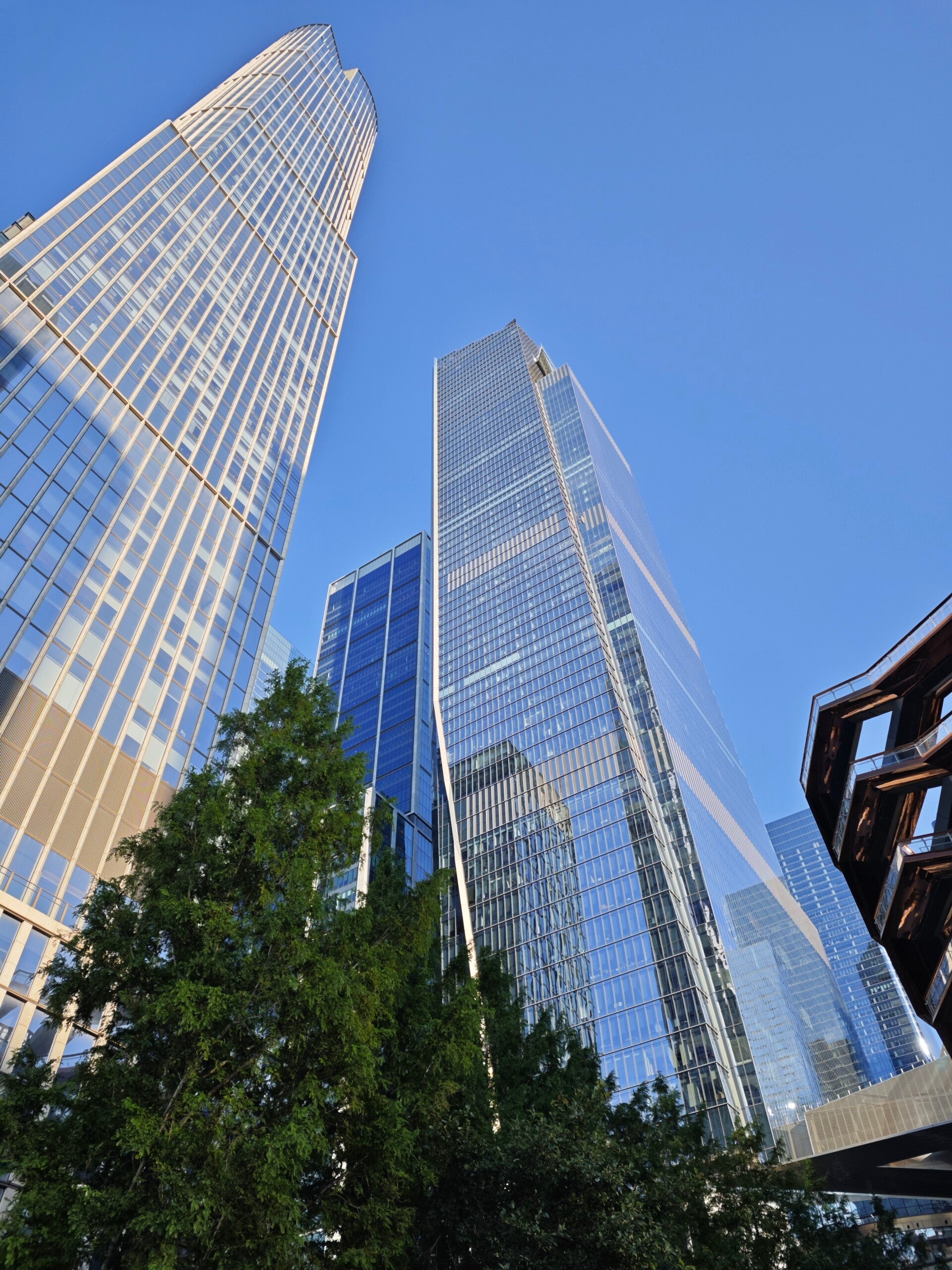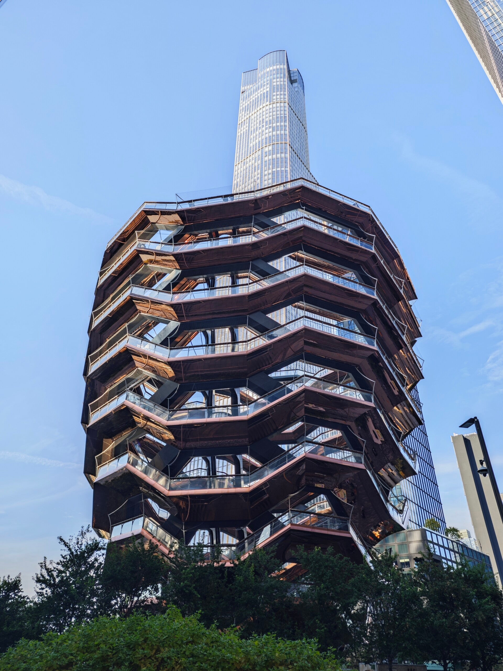 Danach ging es weiter zu den Hudson Yards, wo das alte New York plötzlich ganz modern wirkt. Zwischen glänzenden Türmen steht die Vessel, dieses kupferfarbene, wabenartige Kunstwerk, das fast außerirdisch aussieht. Gleich daneben The Shed, ein wandelbarer Bau aus Stahl und Glas, der im Sonnenlicht fast schimmert.