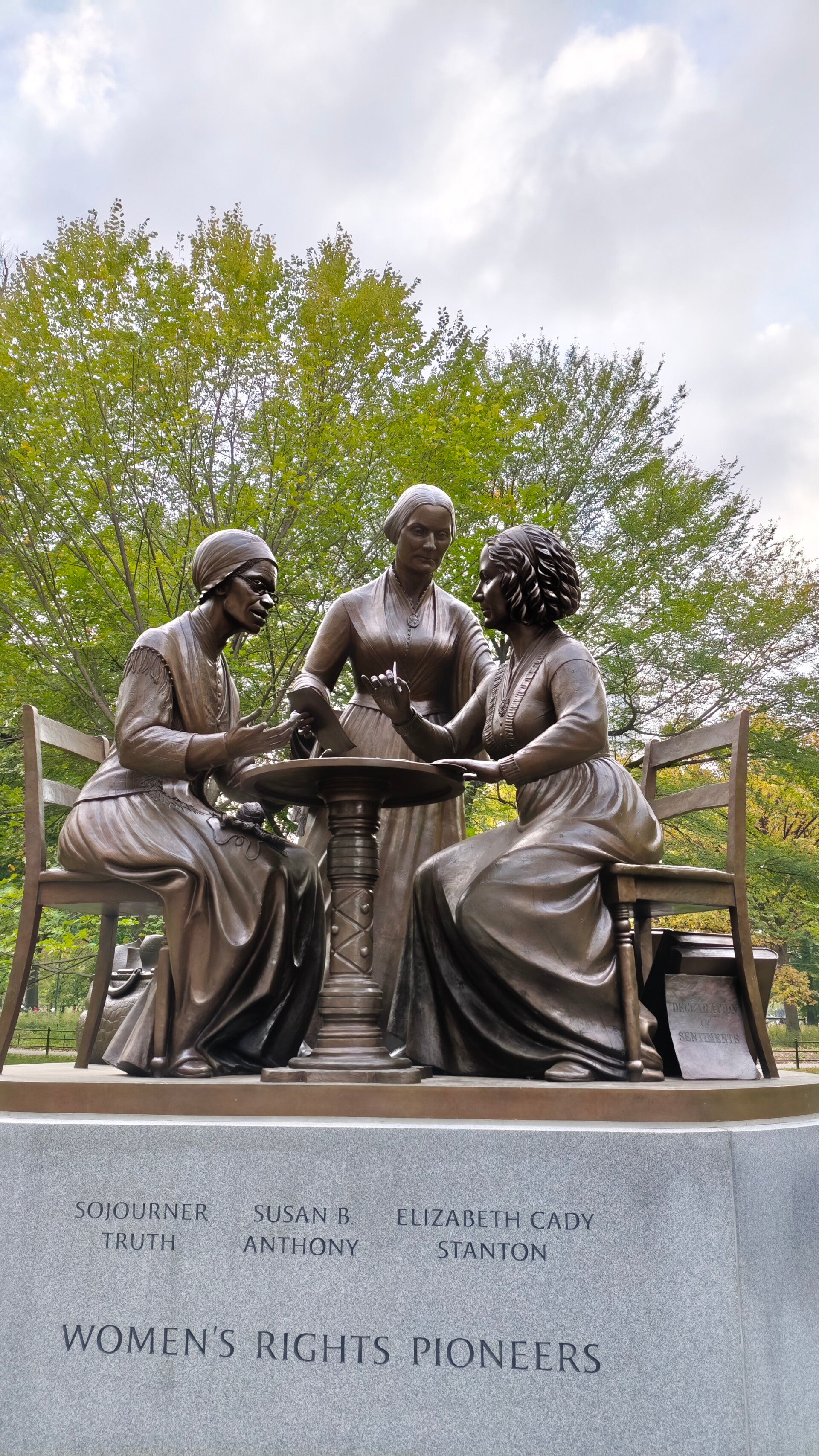 Im Central Park empfing uns wieder das bunte Sonntagsleben. Familien, Musiker, Jogger, Kutschen, Fahrräder, Rikschas, alles gleichzeitig, alles laut, alles lebendig 🎶🚴♀️🐿️ Wir sahen das Denkmal der Women’s Rights Pioneer, drei Frauen aus Bronze, vertieft über Papiere, stark und ruhig zugleich.